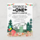 Cute ONE Happy Camper Forest Camping 1st Birthday Invitation