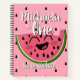 This cute pink design states "you're one in a melon." On the front of the notebook is a cute smiling cartoon watermelon and watermelon seed background. The name is customizable to your one in a melon.