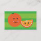 These cute orange business cards feature an adorable kawaii cartoon orange illustration along with an orange slice! These business cards are a creative way to make an impression and are great for using as personal contact cards! Fill in your own name, address, email, phone number and website or any other information that you require in the easy to fill in customizable template!