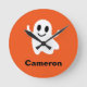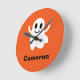 Cute Orange Circle Smiling Halloween Ghost Round Clock