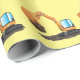 Cute orange excavator digger cartoon wrapping paper