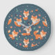 Cute Orange Fox Pattern Large Clock