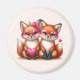Magnet with an adorable image of 2 foxes wearing cute rose tinted heart glasses. Decorated with heart accents.