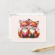 A postcard with an adorable image of 2 foxes wearing cute rose tinted heart glasses. Decorated with heart accents.