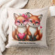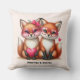 Pillow with an adorable image of 2 foxes wearing cute rose tinted heart glasses. Decorated with heart accents.