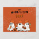 This adorable Halloween postcard features three playful ghosts wearing orange beanies, each holding bubble tea or a pumpkin bucket, set against a bold orange background with spiderweb details. The quirky “Happy Halloween Boo!” text adds a fun and festive vibe. Perfect for sending spooky greetings, decorating your Halloween party, or giving as a keepsake. The cheerful ghost trio makes this card stand out, blending modern humor with traditional Halloween fun. A must-have for anyone who loves lighthearted Halloween stationery.