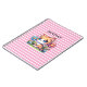 An adorable kitten sitting in a patch of blue and pink flowers and white polka dots personalized notebook.