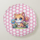 Cute Orange Kitty Cat in Flowers Personalized Round Pillow