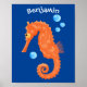 This cute seahorse is cruising on the ocean currents. Drawn in fun cartoon illustration style.