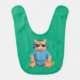 A cute funny baby bib featuring a fat orange tabby wearing sunglasses and headphones.