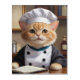 Adorable orange tabby cat dressed as a professional chef, holding a cookbook in a cozy kitchen. Perfect for food lovers, cat owners, and anyone who enjoys humorous pet artwork.