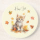 Cute Orange Tabby Kitten in Fall Leaves Coaster
