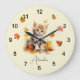 Cute Orange Tabby Kitten in Fall Leaves Large Clock