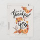 This Thanksgiving postcard features a cute autumn design with orange pumpkins, yellow, sage, and brown leaves, and sweet gratitude-filled words in black modern handwritten calligraphy: "I'm so thankful for you." The name on the front and the text on the back are customizable. It's a heartfelt and thoughtful way to show gratitude to your loved ones. Order yours now for a perfect fall or autumn-themed message of love and thanks!