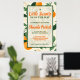 Cute orange theme foam board baby shower poster. This sign will easily convert to the 20 x 30 or 24 x 36 sizes, with easy to customize text. Complete your summer theme party with this customized sign, great for any occasion.