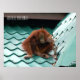 Borneo Poster. Adult orangutan sits on the roof of a hut in Sabah, Borneo