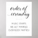 This funny, yet elegant, Order of Ceremony advice sign features a black and white miminalist style with a mixture of handwriting and simple block fonts. This can make a great poster to add to your wedding ceremony. Part of the Alejandra Collection.