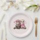 Paper plates with a cute illustration. A pair of otters in pink people clothing. Wearing striped shirts and one wearing a tie and the other wearing a bow. Surrounded by love hearts.