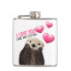 Cute Otter with Pink Hearts Love You Pun Flask