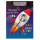 Cute Outer Space Rocket Ship Blast Off Birthday Clipboard