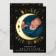 Celebrate the arrival of your little one with this Over the Moon Photo Birth Announcement Card! This announcement card features a modern font in real foil with a photo of your new baby set in a moon frame against a black background. All photo-related media featured on this item is meant to be replaced and for display only. Please replace it with your photo. The cover photo has been designed using resources from Freepik.com