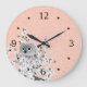 Cute Owl and Cherry Blossoms Rose Gold Large Clock