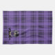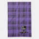 Custom American MoJo Kitchen Towel 16" x 24" with a vector graphics art design of a cute purple, gray, and black emo owl with hair and a purple skull bow sitting on a branch with a broken heart and a purple plaid pattern background.