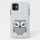 A cute owl on a striped iPhone 5 case. Customize this phone case by changing the background color if you wish.