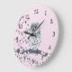 Cute Owl Cherry Blossoms Pink Numbers Large Clock