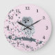 Cute clock for girls with a baby owl sitting on a cherry blossom branch and a pink background.