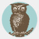A cute brown owl peers at you. Vintage owl illustration is very hipster chic. Background color can be changed by clicking the customize button and selecting edit to your right. Click on background from the menu that pops up and select your color.