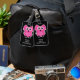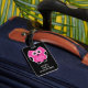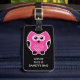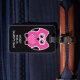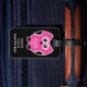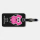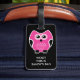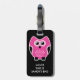 Here's a cute and funny luggage tag with a pink owl on a black background color that you can change along with name drop monogram you can personalize and make your own. Replace the template name with your own name or monogram initials displayed on both sides.