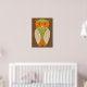 This cute owl poster is one of three. It features a retro style illustration of an owl in orange, cream and avocado green set against a brown background.