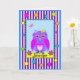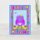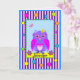A Birthday card with a cute owl in a decorative frame with colorful patterns (stripes, polka dots and little geometric shapes). This card has on the front a name and inside the tekst: "Wishing you a Happy Birthday!". The name and wishing you tekst are template objects and can be customized easily. It is also possible tochange all the background colors with the edit / (advanced) background function.