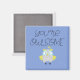 Cute owl magnet with the words "You're Owlsome" with blue background. Small gift for friends, teachers, etc.