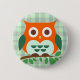 Retro Orange Owl on a branch graphic. Green plaid background that can be deleted. Trendy sweet modern owl.