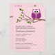 Cute Owl on Branch and polka dots Baby Girl Shower Invitation