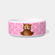 Cute Owl on Pink Heart Pattern Background Bowl