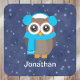 Cute Owl with Ear Muffs and Scarf on Blue Square Paper Coaster