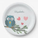 Cute Owl with eyeglasses on a branch custom name Paper Plates