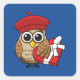 Cute Owl with Red Beret and Heart Box Square Sticker