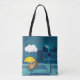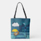 Cute Owl with Umbrella on Rainy Day Tote Bag