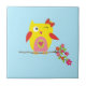 Cute Owl Yellow Pink Illustration Ceramic Tile