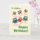 A fun birthday card to personalize for a any Relative or Name, with cute and colorful owls on a parchment-colored background, from a hand-painted paper collage by Judy Adamson. You can also change the inside message if you wish.