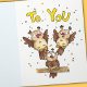 One the inside of the card, the two other owls have sprung in the air, shouting "To you!". The third owl is below them, grinning from ear to ear.