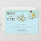Whimsical save the date invitation cards with two cute owls sitting on a branch with a heart in a talk bubble above them. Background in shades of robin's egg blue. Personalized with your information in the space provided. Get the matching Owl Save the Date postage stamps below.