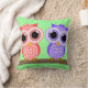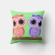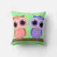 Cute pink and purple owls American Mojo pillows, t-shirts, sweatshirts, shirts and owl gifts for owl lovers, bird lovers and birders. Two owls sitting on tree limb. Unique, colorful and cool owl gifts for birthdays, Christmas or any occasion.