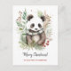 Cute Panda Baby Rustic Christmas botanicals postcard. Rustic watercolors and lineart style black and white cute panda bear with green and white shawl and beautiful winter botanicals. Personalized text with a lovely trendy script.