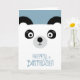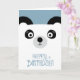 Cute panda bear illustration with blue background and charming "Happy Birthday" text.