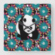 Cute Panda Bear Blue Pink Flowers Floral Pattern Square Wall Clock